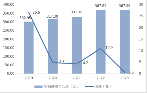 貨物貿易。全年全縣實現貨物進出口總額367.99億元,增長0.6%。其中,出口總額350.74億元,增長3.8%;進口總額17.26億元,下降38.2%。機電和高新技術產品進出口總額達2667.42億元,增長2.3%。全年全縣完成對“一帶一路”沿線64國合計進出口額94.86億元,增長13.9%,其中出口94.11億元,增長23.0%。